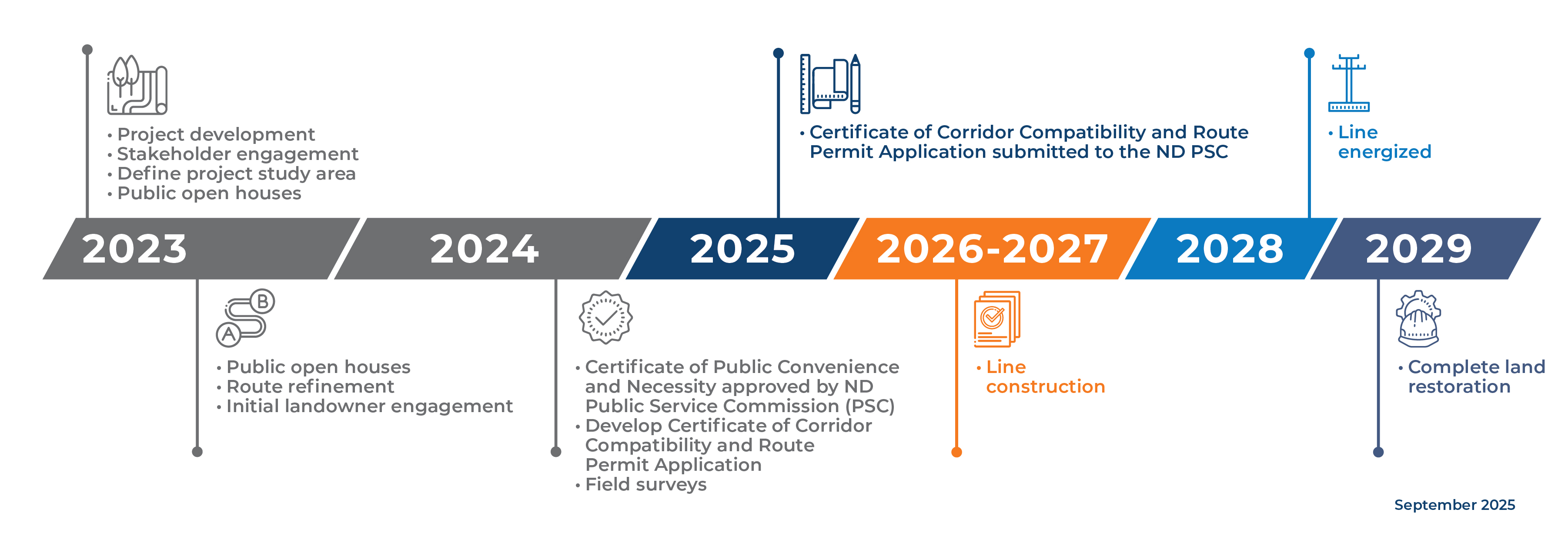 Developing and constructing a transmission line is a multi-year effort. We'll continue coordinating with landowners, local governments, agencies, and other stakeholders throughout the duration of the project. We are anticipating an in-service date in 2028.