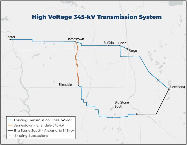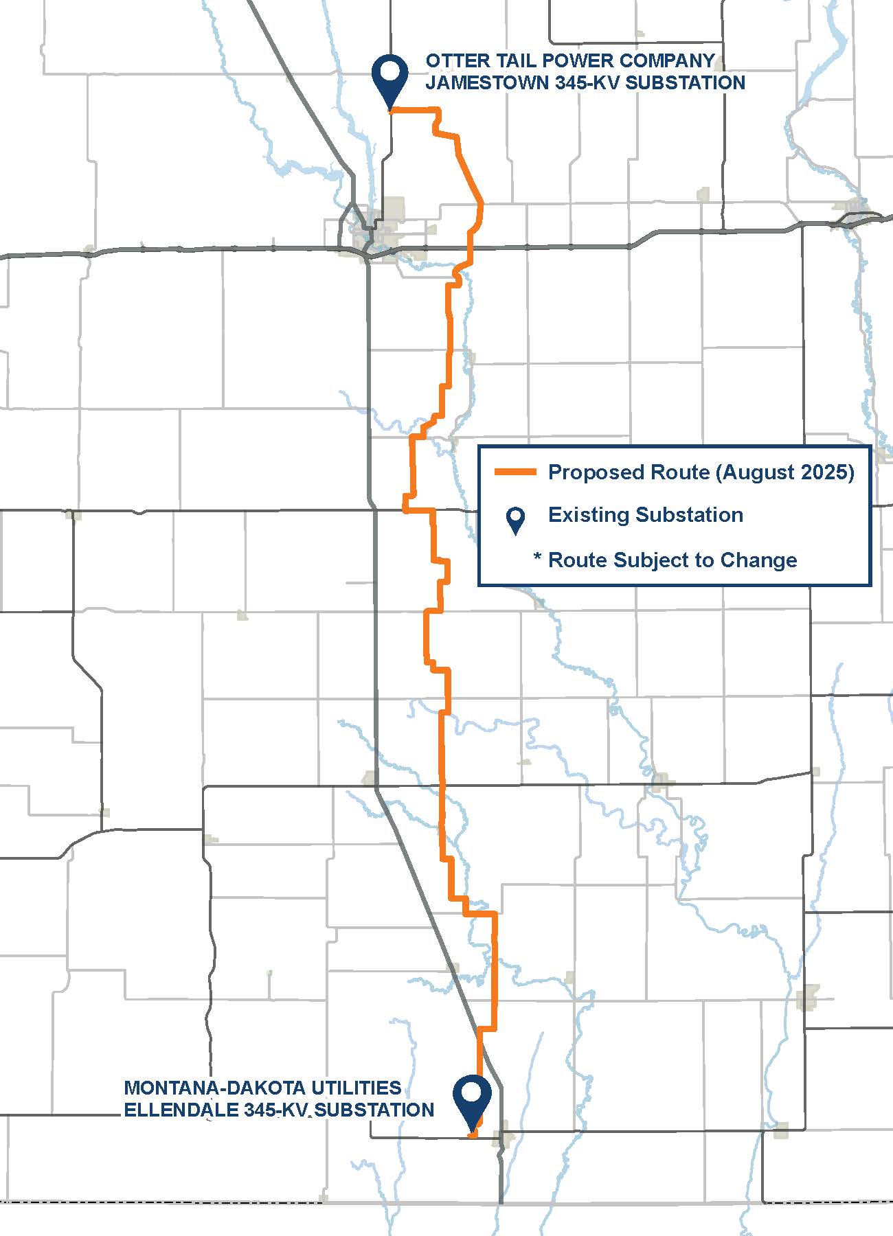 Imagine a future for North Dakota defined by a resilient, reliable electric grid that supports rural living and thriving communities. This vision drives the partnership between Otter Tail Power Company and Montana-Dakota Utilities Co. to develop, construct, and co-own an approximately 92-mile, 345-kilovolt (kV) transmission line in North Dakota. The Jamestown to Ellendale transmission line (JETx) will run from Otter Tail Power's Jamestown Substation to Montana-Dakota Utilities' Ellendale Substation.